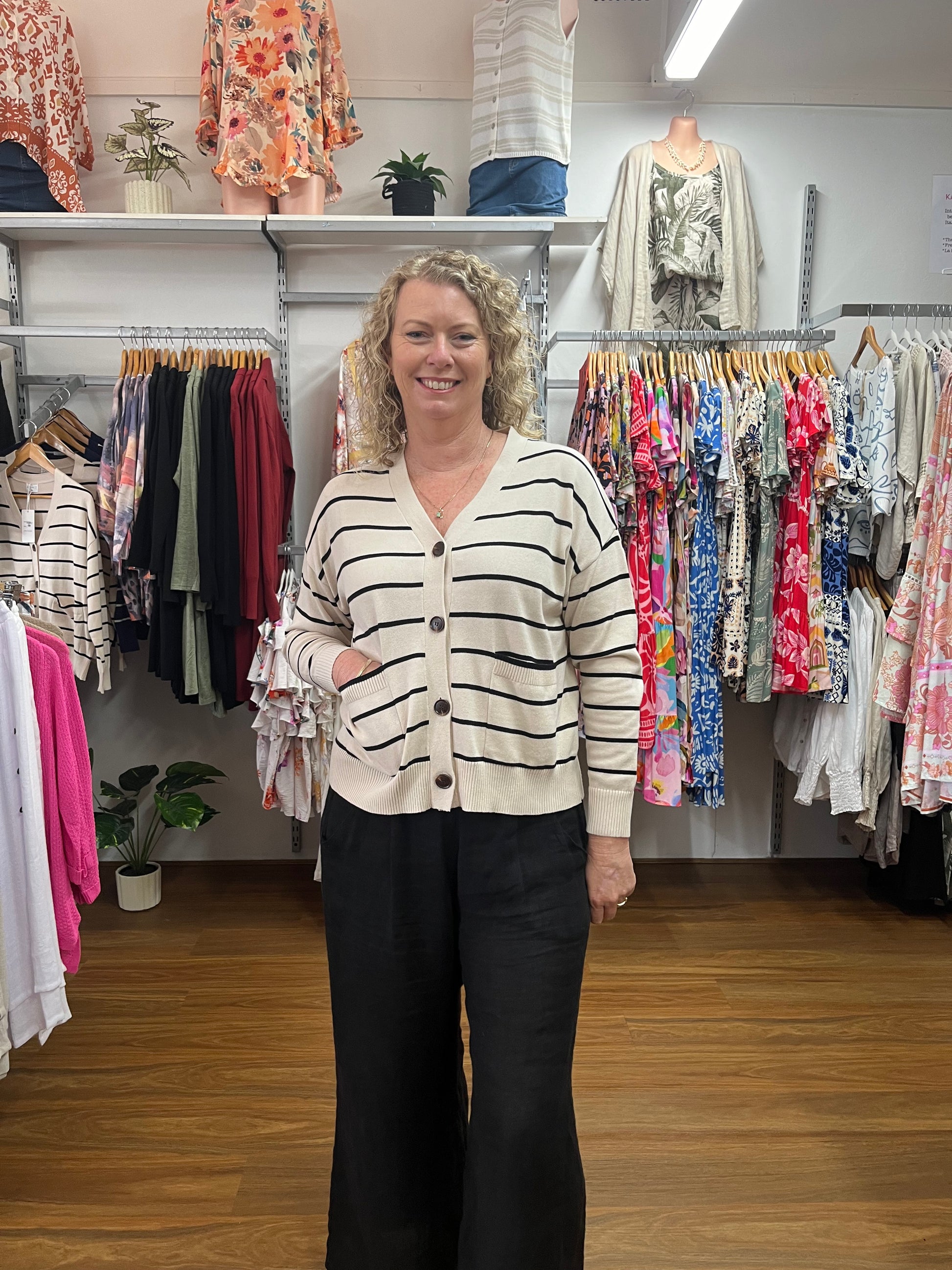 Get ready to cozy up in style with our Stripe Cotton Cardigan! Made from 100% cotton, it's not only soft but also lightweight and breathable. The striped design adds a touch of playful flair, while the front pockets are perfect for keeping your hands warm. With a flattering v-neckline, this cardigan is the perfect addition to any outfit.