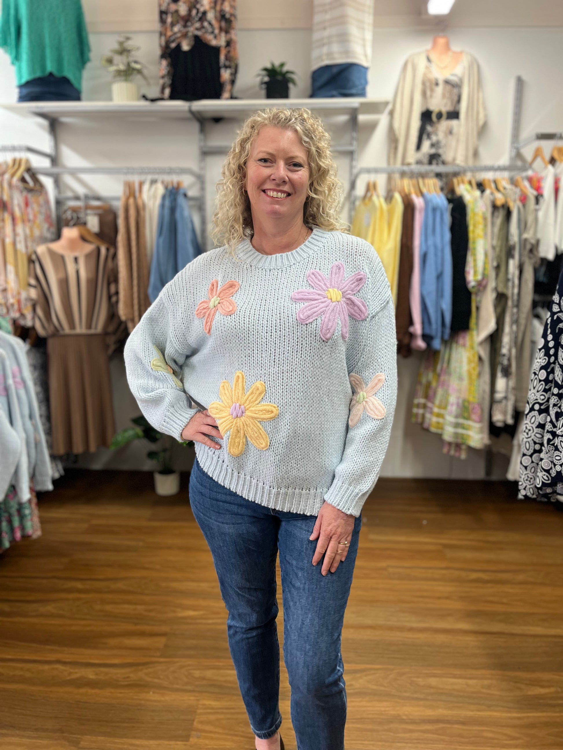 The Daisy Jumper is the perfect addition to your wardrobe with its round neckline and vibrant, eye-catching flowers. Not only is it stylish, but it's also warm and comfortable, ideal for colder days. You'll love the playful design and cozy feel of this quirky jumper.